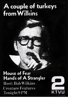 “Don't stay up late, it's not worth it," Bob Wilkins warned as he leaned back in his yellow rocking chair, smoke wafting from his big cigar. But monster movie fans in Northern California stayed up with him every Saturday night anyway. Creature Features made it's debut on Channel 2 (KTVU) in 1971, and was an immediate success with it's grade-Z horror films and Bob's dry sense of humor. His cool, low-key deadpan helped him rise above it all, elevating films like The Navy Vs. The Night Monsters as well.
