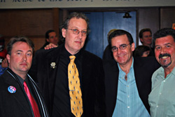 August Ragone, hugged me and said I stole his best lines. Scott gave him Bob's Godzilla file that contained notes, press materials and letters written by Auggie as a kid. Bob Johnson and Auggie shook hands after not speaking to each other for 3 years, due to their falling out after Godzillafest. A very inspiring moment since there has been a lot of tension and hurt feelings among the diffent camps of "Creature Feature's children" with all of the overlapping film events and projects. Nearly unrecognizable, Doktor Goulfinger was there sans beard. He didn't talk to any of us, which is too bad, I would have liked to bury the hatchet in the same spirit.